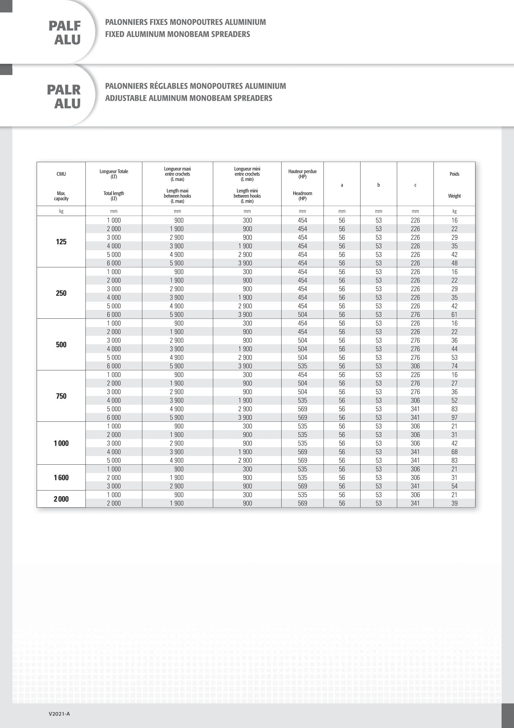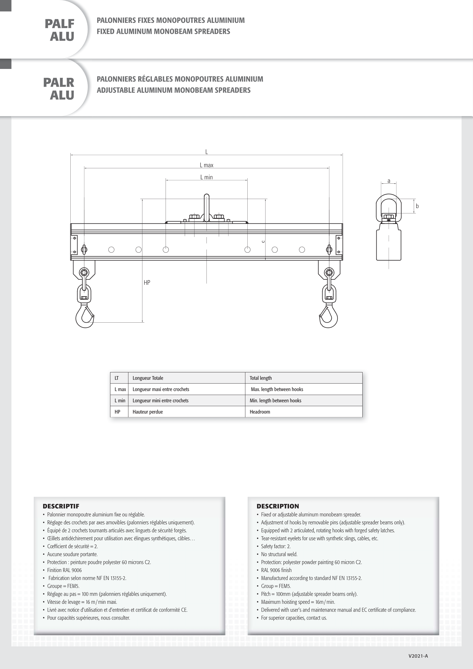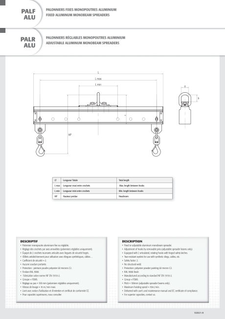 Palonnier monopoutre Réglable aluminium . PALR ALU